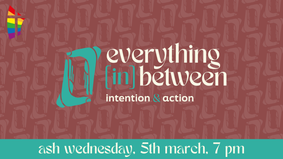 In our Lent logo, the two hands reaching toward each other represent our longing for connection despite the politics, assumptions, beliefs, and narratives that divide us. The hands look as if they are reaching in for a handshake, but they are paused just before they connect. The negative space in between the hands creates the shape of a doorway, symbolizing hospitality or a pathway forward. The doorway invites us to look for God in the spaces in between. In the typography, the 'in' is bracketed, emphasizing the promise that God shows up in surprising ways and unexpected places, but is present in it all. The shape of the hands further echoes the bracket shape. Grammatically, brackets are used to provide additional explanation or information. The brackets around the [in] represent the charge to each of us: to dig deeper into complexity and nuance, to ask questions and stay curious, and to be open to where God might meet us along the way.